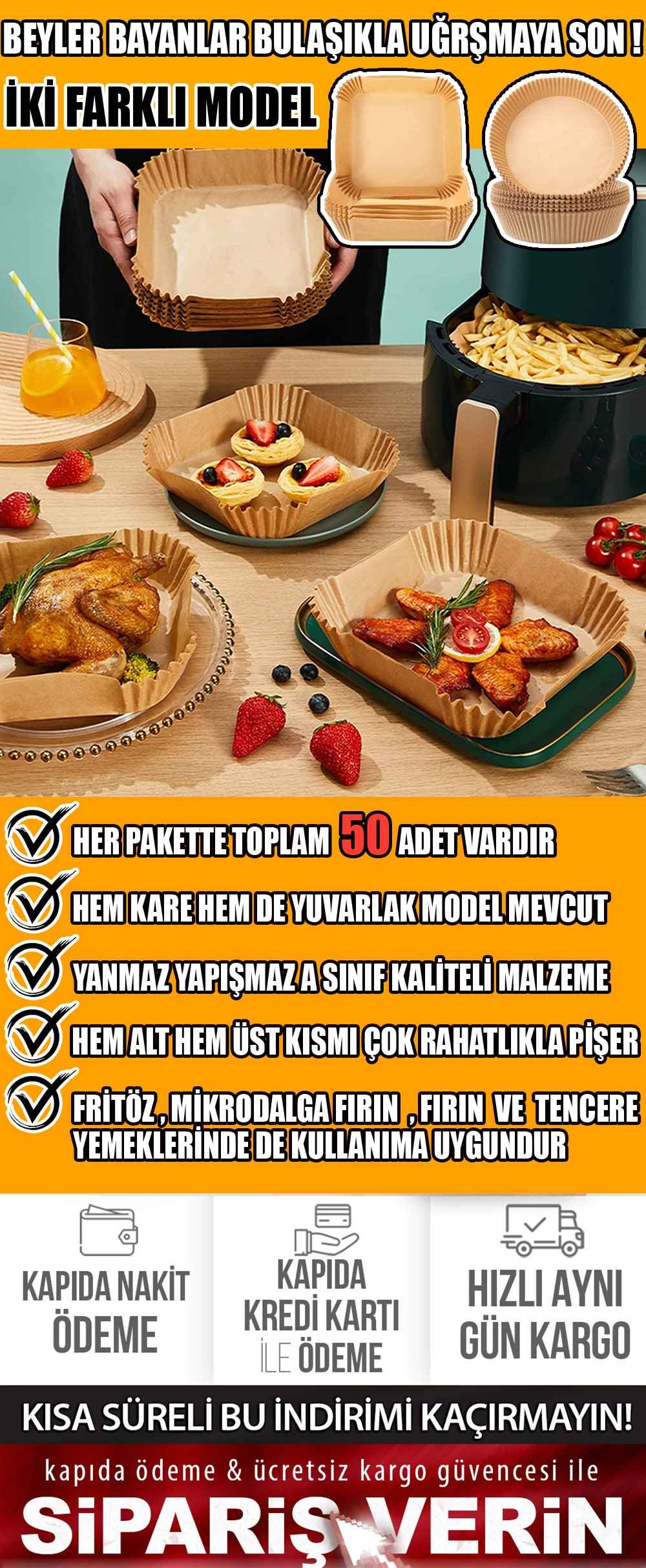 1 PAKET (50 ADET) AİRFRYER PİŞİRME KAĞIDI -