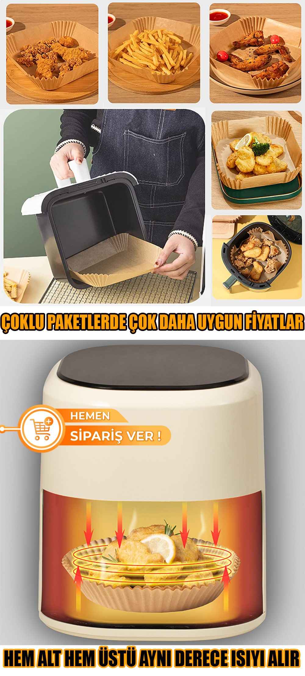 3 PAKET (150 ADET) AİRFRYER PİŞİRME KAĞIDI -