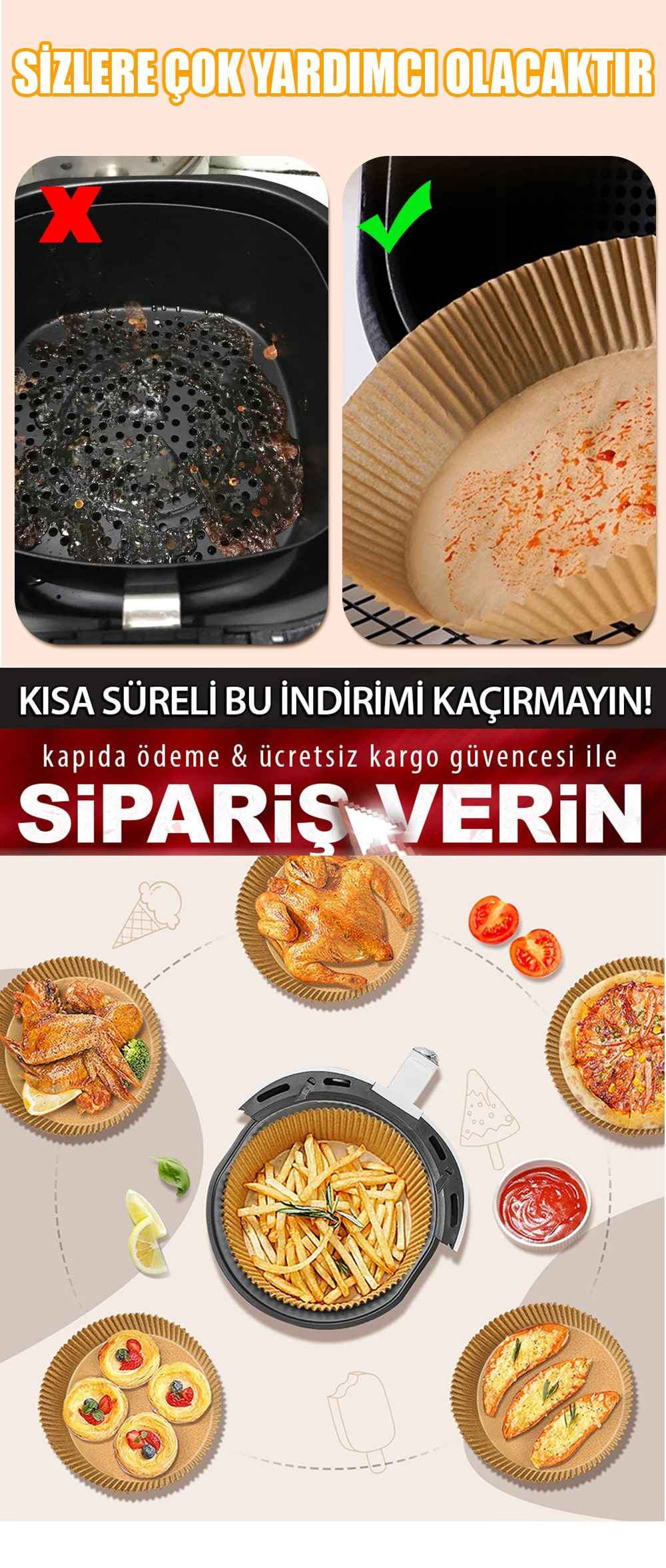 2 PAKET (100 ADET) AİRFRYER PİŞİRME KAĞIDI -